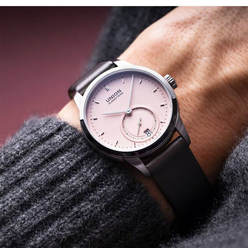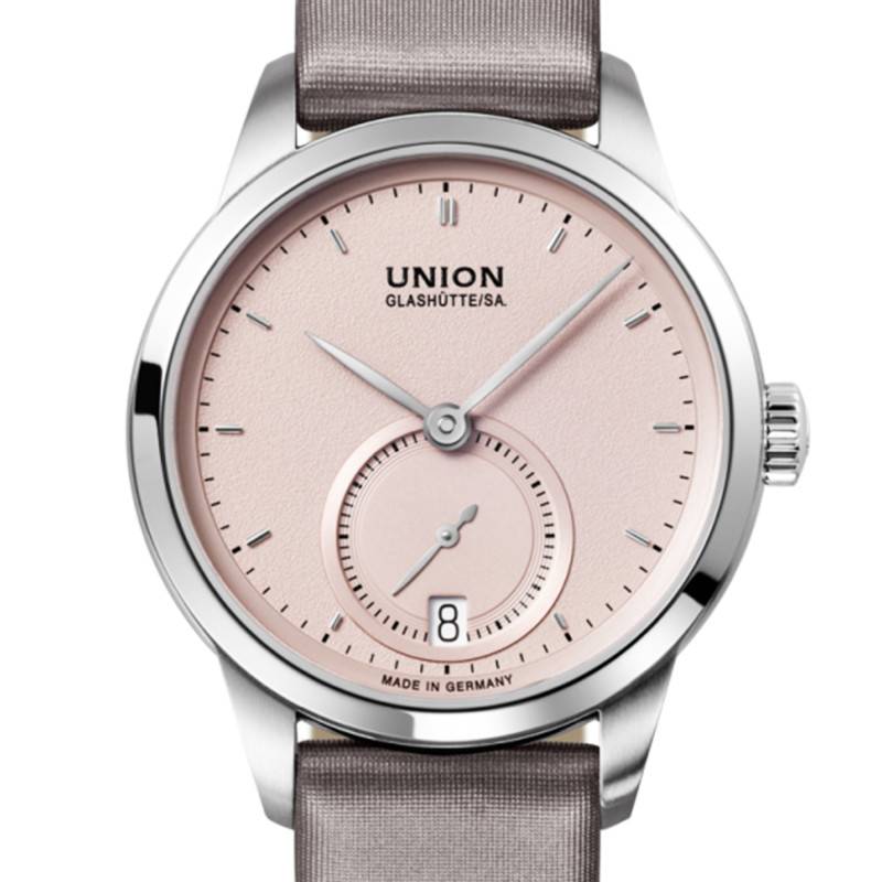 Le cadran de cette montre est un véritable bijou avec une finition grainée en rose qui capture subtilement la lumière pour un effet visuel raffiné. Les index appliqués et le chemin de fer des minutes offrent une lisibilité idéale. Les aiguilles de style classique marquent le temps sur un affichage analogique, mais l'élément central reste la petite seconde située à 6 heures, un hommage aux cadrans d'époque, mariant fonctionnalité et esthétique. De plus, le guichet date est discrètement intégré, ajoutant une utilité quotidienne sans rompre l'harmonie visuelle du cadran. La mention de la marque Union Glashütte se place fièrement sous les 12 heures, témoignant du savoir-faire horloger. Ce cadran est protégé par un verre saphir pour une protection contre les imprévus du quotidien.
