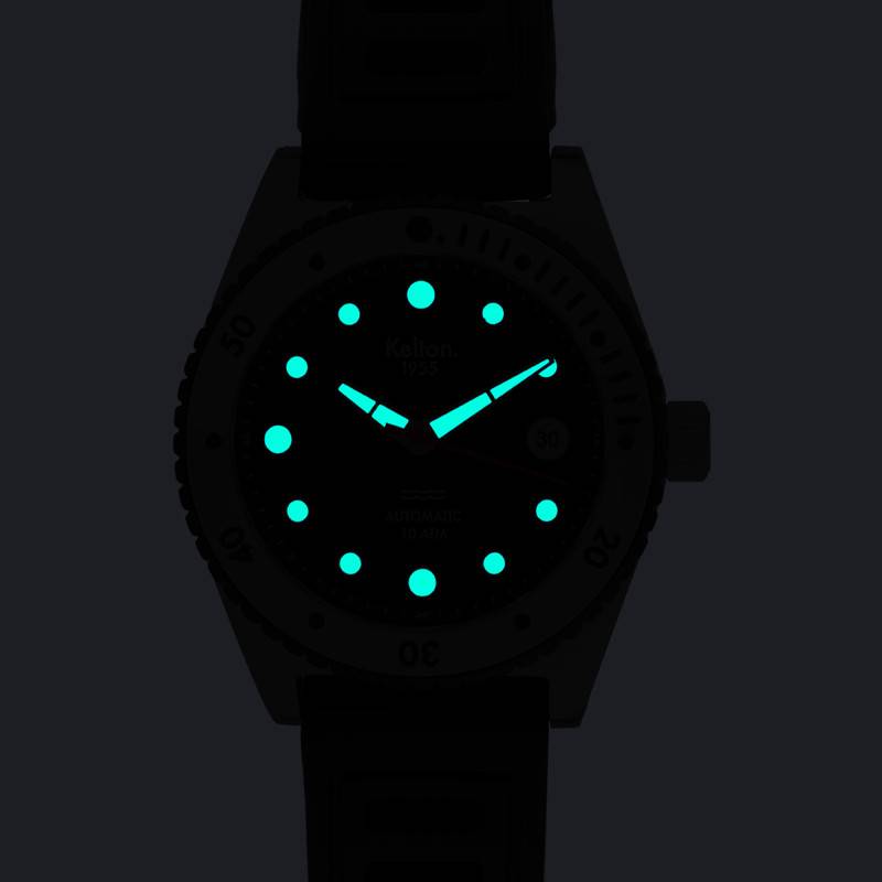 Le cadran noir de cette montre est un théâtre de lisibilité et de clarté, entièrement dédié à sa fonction de mesure du temps. Sa finition mate absorbe les reflets gênants, permettant ainsi une lecture impeccable à tout moment de la journée. Les aiguilles et index luminescents sont traités avec du SuperLuminova, un matériau innovant qui emmagasine la lumière pour une visibilité optimale même dans l'obscurité la plus totale. Cette technologie moderne sert à garantir que les heures, minutes et secondes soient lisibles en toutes circonstances. Un guichet date rond, élégant et discrètement positionné à 3 heures, s'intègre parfaitement au design tout en apportant une fonctionnalité supplémentaire.