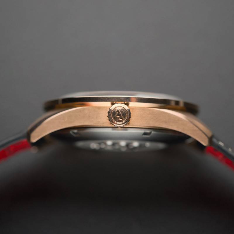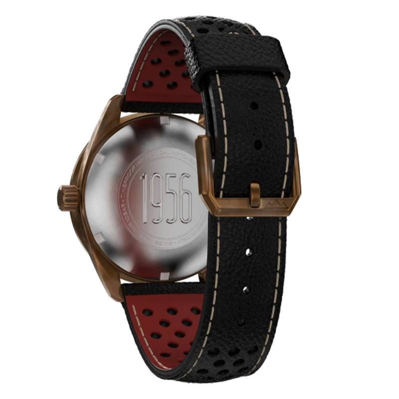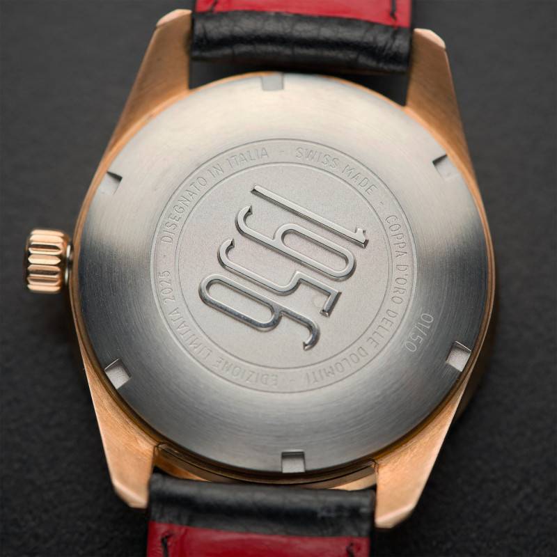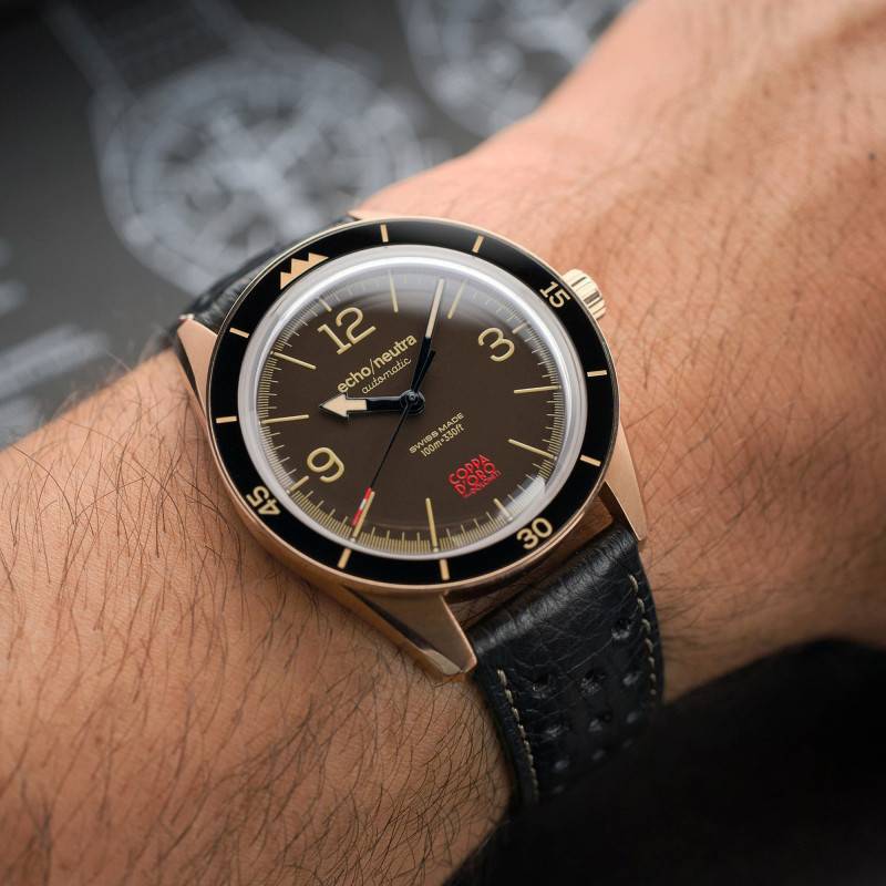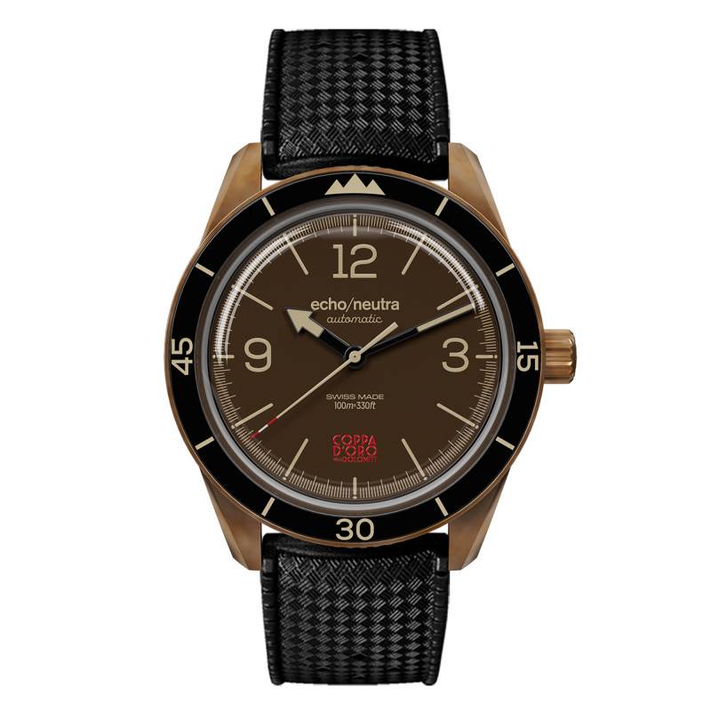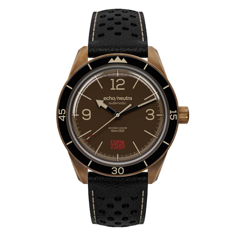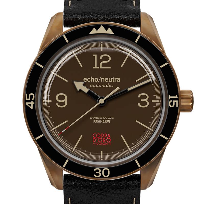 La montre Echo/Neutra 1956 3H Coppa d'Oro 2025 célèbre le partenariat prestigieux entre la marque horlogère suisse Echo/Neutra et la légendaire course automobile Coppa d'Oro delle Dolomiti, dont l'édition 2025 s'est déroulée du 24 au 27 juillet au départ de Cortina d'Ampezzo. En tant que chronométreur officiel de l'événement, Echo/Neutra rend hommage à cette alliance d'élégance et de performance avec une édition limitée à seulement 50 exemplaires. Le boîtier rond en bronze CuSn8 évoque une allure classique et robuste, mettant en valeur une esthétique urbaine et élégante. Avec un diamètre de 40 mm et une épaisseur de 11,90 mm, elle offre une présence affirmée sans être envahissante sur le poignet. Son fond de boîte vissé garantit une protection étanche efficace, tandis que la lunette en céramique ajoute une touche contemporaine et une résistance accrue aux rayures. L'ensemble est sublimé par un verre saphir bombé renforcé par un double traitement antireflets.
