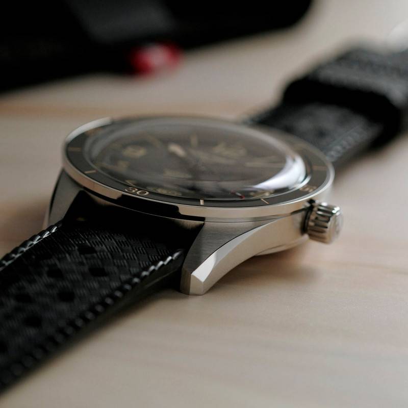 Ce charmant modèle est habillé par un bracelet noir en cuir vintage, un bracelet en cuir de buffle d'eau noir, un bracelet en maille milanaise ou encore un bracelet à maillons en acier inoxydable. Il arbore une entrecorne de 20 millimètres et se referme à l'aide d'une boucle ardillon pour les bracelets en cuir, une boucle clipable pour la maille milanaise ou une boucle déployante pour le bracelet à maillons. La montre est accompagnée d'un second bracelet Tropic en caoutchouc noir.