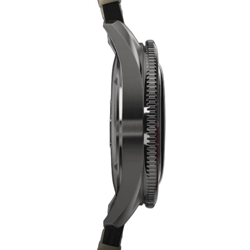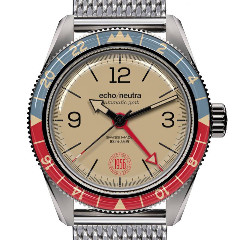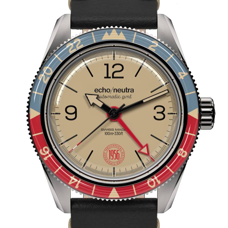 La montre 1956 GMT Khaki de la marque Echo/Neutra se distingue par son design audacieux et ses matériaux de haute qualité. Le boîtier est conçu en acier inoxydable 316L, offrant une robustesse exceptionnelle et une résistance à l'usure remarquable. Le diamètre de 40 mm s'adapte parfaitement au poignet masculin, tandis que son épaisseur est de 11,90 mm, conférant à la montre une présence élégante sans être imposante. Avec sa finition mate brossée et ses accents polis, la montre arbore un style classique tout en intégrant des éléments modernes. La lunette bi-directionnelle en saphir est particulièrement pratique pour les ajustements rapides, avec des marqueurs luminescents qui garantissent une lisibilité parfaite à toute heure.