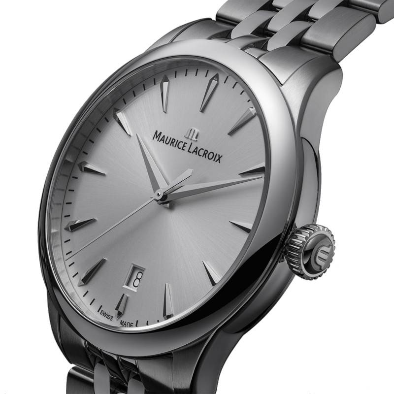 Le cadran de cette montre Maurice Lacroix est une véritable ode à l'élégance minimaliste. Son fini soleillé crée des variations de lumière captivantes, transformant chaque regard en un spectacle unique. Les index appliqués sur le fond gris, associés au chemin de fer des minutes tracé, facilitent la lecture de l'heure tout en ajoutant une dimension luxueuse à l'ensemble. La montre affiche heures, minutes et secondes avec une précision parfaite grâce à ses aiguilles élancées, épousant parfaitement le style sobre mais sophistiqué. Un guichet date à six heures se fond harmonieusement dans le cadran, apportant une fonctionnalité supplémentaire sans compromettre l'esthétique épurée.