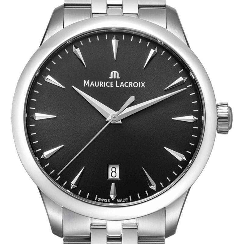 La montre Maurice Lacroix représente une fusion parfaite de sophistication et de fonctionnalité. Avec son boîtier rond de 39 mm de diamètre réalisé en acier inoxydable, cet accessoire reflète un style moderne tout en assurant une robustesse exceptionnelle. Le boîtier a une finition alternant entre mate (brossée/satinée) et polie/brillante, offrant un jeu de contrastes captivant et mettant en valeur les détails raffinés de la montre. La couronne, élégamment disposée sur le côté droit, assure le réglage précis de l'heure.