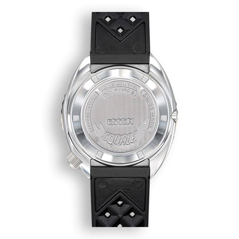 Née d'une association entre la passion pour les sports aquatiques et un fort intérêt pour le marché horloger, la marque incontournable Squale est diffusée mondialement pour ses créations suisses destinées à parer tous les amoureux de la plongée. Entre créativité, innovation et style, elle ne cesse de nous éblouir par des garde-temps tendances et robustes capables de perdurer dans le temps et d'être un allié indispensable pour tout type d'aventures. Aujourd'hui, elle vous dévoile sa montre 2002 Black Round Dots 2002.SS.BK.BK.HT, issue de sa collection phare 2002. Il s'agit d'une pièce sophistiquée et distinctive qui vous fera resplendir en toute occasion. Fabriquée la première fois en édition limitée pour les hommes-grenouilles de la police italienne, aujourd'hui, elle est destinée à habiller tous les hommes modernes et élégants désireux de se démarquer de la foule. Son boîtier conçu en acier inoxydable 316l vous rappellera la forme d'un hublot, une touche originale qui mettra en valeur votre allure. Il arbore une finition polie et mesure 44 mm de largeur et 49 mm de longueur pour une épaisseur de 16 mm, de quoi souligner à merveille les poignets de la gente masculine. Un verre saphir plat protégera le cadran de possibles dommages lors des chocs et vous garantira une lecture exceptionnelle grâce à son traitement anti-reflet. Il est entouré d'une lunette crantée unidirectionnelle, habillée en noire et graduée d'un chemin de fer des minutes. Ajoutant une touche plus moderne à la montre, elle vous servira pour le calcul des temps écoulés. Une couronne vissée trouve sa place sur la carrure à 4 h pour vous aider à régler manuellement votre tocante. Finalement, le fond de boîte vissé permettra une étanchéité de 10 ATM à la montre.