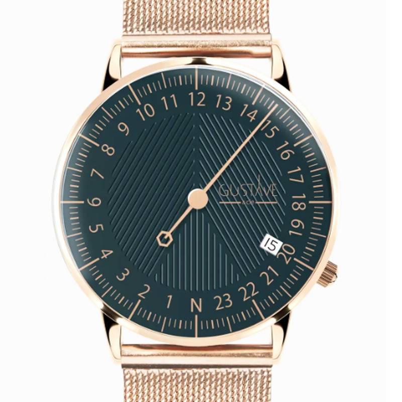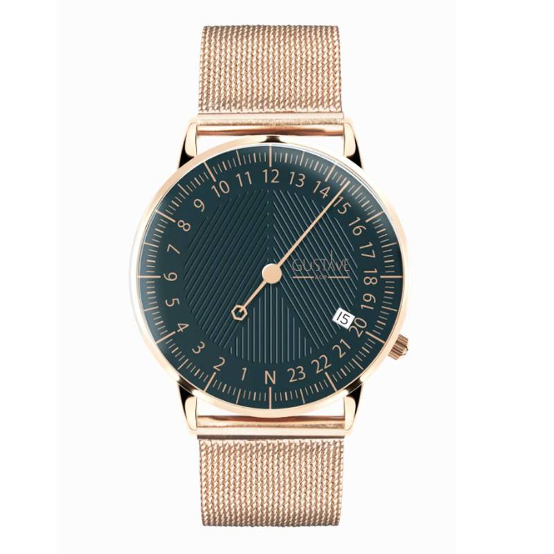 La montre Gustave & Cie que nous vous proposons ici se démarque avant tout par son design raffiné et son boîtier en acier inoxydable 316L à la finition PVD rose. Ce matériau de haute qualité garantit une grande résistance à la corrosion et un aspect brillant et poli qui attire les regards. Avec un diamètre de 36mm et une épaisseur de 8mm, cette montre fabriquée en France allie parfaitement élégance et sophistication.