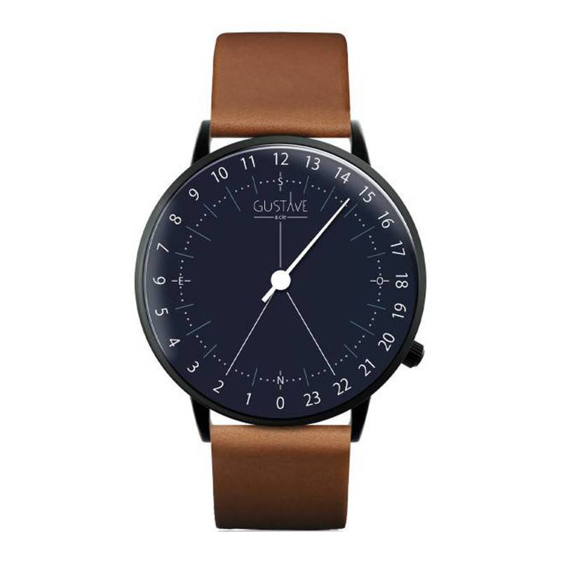 GUSTAVE et cie réinvente la montre, en bouleversant les codes et en revisitant le cadran sur 24 Heures utilisé par les militaires et les astronautes. Libérée d'un format étriqué, la montre GUSTAVE et cie allonge les journées et fait évoluer son heureux propriétaire dans un nouvel espace décloisonné. Adieu la fébrilité et l'angoisse, vive la légèreté et l'efficacité générées par le gain de sérénité ! Montre mixte, le modèle 24h Antoine est un véritable exemple des collections Gustave et cie. Son boîtier rond mesure 40 millimètres de diamètre pour 8 millimètres d'épaisseur, et est conçu en acier inoxydable. Il épousera à merveille tous les types de poignets. Le cadran est protégé par un verre saphir qui vous évitera les désagréments de l'usure et des chocs du quotidien. Ce garde-temps présente un cadran Mono-Aiguille 24 heures. Aussi, un bouton remontoir prend place au niveau de l'index de 20 heures, et permet de régler les aiguilles comme bon vous semble. Son fond de boîte vissé vous assurera une étanchéité de 5 ATM, soit jusqu'à 50 mètres de profondeur.