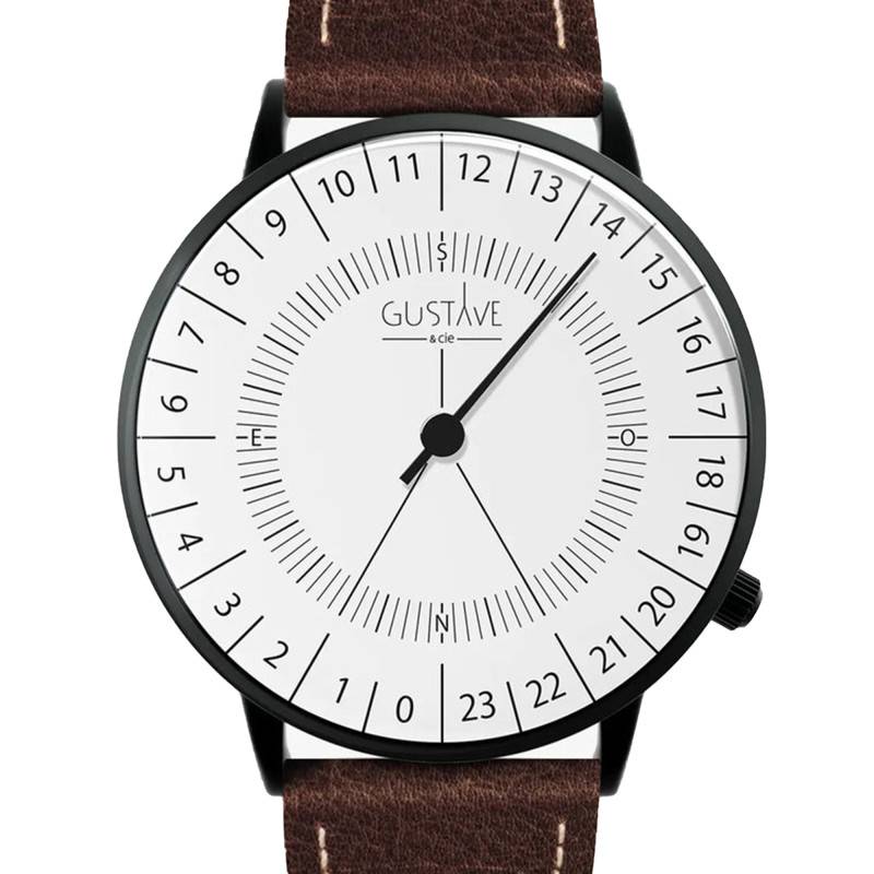 Montre 24H Antoine Noir & Blanc Cuir Marron Chocolat 40mm