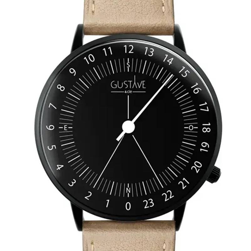 Montre 24H Antoine Noir & Noir Cuir Beige 40mm