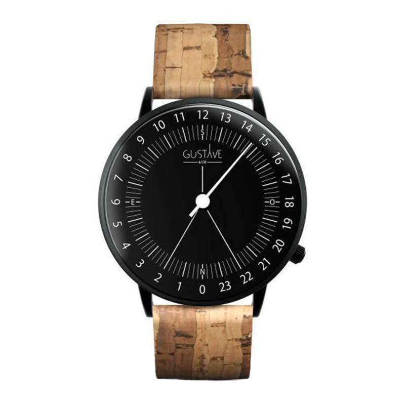 Son savoir-faire à la française, fait de la maison horlogère Gustave et Cie l'une des marques les plus uniques et innovantes. Le nom de la marque fait référence à Gustave Eiffel. Ses deux créateurs ont souhaité rendre hommage aux grandes personnalités françaises qui ont marqué notre pays. Ainsi, sa nouvelle montre issue de la collection Antoine, revisite le cadran 24h généralement utilisé par les militaires et les astronautes. Ce garde-temps saura plaire aux femmes, comme aux hommes. Il mesure 40 mm de diamètre pour une épaisseur de 8 mm. Il est conçu d'acier inoxydable avec une finition PVD noir mat qui donne de l'allure à la montre. Une couronne remontoir est située au niveau de l'index des 20 heures (traditionnellement 4 heures). Elle permettra de régler la mono-aiguille présente au centre du cadran. Cette montre est surmontée par un verre minéral qui vous protégera contre les chocs et les rayures. Son fond de boîte emboîté vous garantira une étanchéité de 3 atmosphères.