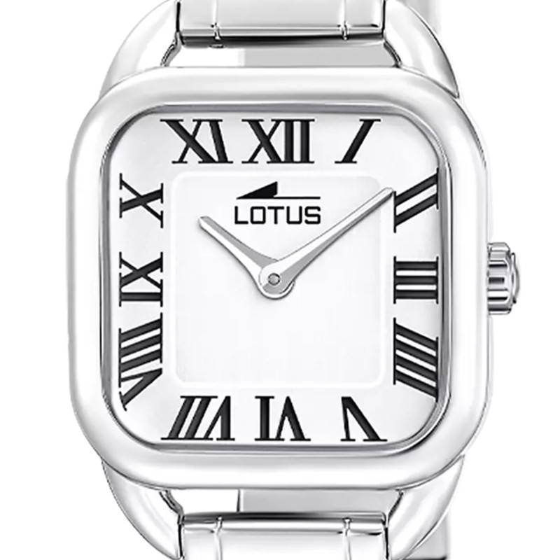 Cette montre Lotus pour femme est un exemple d'élégance contemporaine, mêlant subtilement modernité et tradition. Le boîtier ovale mesure 25 mm de diamètre avec une épaisseur discrète de 7,05 mm, ce qui lui donne un profil fin et gracieux. Réalisé en acier inoxydable de haute qualité, le boîtier combine des finitions polies et satinées, offrant un aspect à la fois brillant et raffiné. Sa légèreté, à seulement 51,51 grammes, assure un confort optimal au poignet. Le choix d'un verre plat en verre minéral ajoute une protection durable tout en préservant une vue claire sur le cadran.