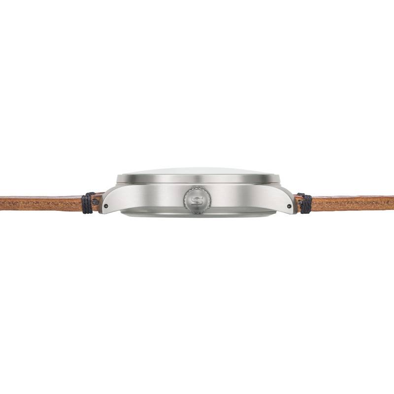Sous le capot, la montre est animée par un mouvement automatique suisse Sellita, le calibre SW 382-1, garantissant une précision exceptionnelle et une fiabilité continue. Ce mouvement réputé pour sa robustesse oscille à une fréquence de 28.800 A/h (4 Hz), procurant une stabilité à couper le souffle. Le mécanisme est visible à travers le fond transparent de la montre, une caractéristique qui permettra aux passionnés d'horlogerie d'apprécier la finesse et le travail d'orfèvre des assemblages internes. De plus, ce mouvement est équipé d'un dispositif stop seconde, permettant des réglages extrêmement précis de l'heure, une nécessité pour ceux qui exigent la meilleure synchronisation.