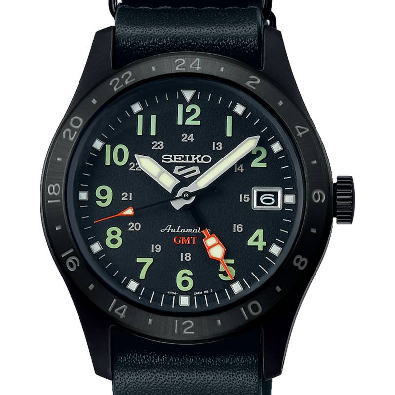 Le mouvement automatique qui anime ce modèle promet une expérience horlogère authentique et unique. De fabrication japonaise, ce calibre Seiko 4R34 possède 24 rubis et propose une réserve de marche de 41 heures. Il oscille à une fréquence de 21'600 alternances par heure et permet un affichage analogique à trois aiguilles, un quantième date et actionnera avec efficacité l'aiguille GMT.
