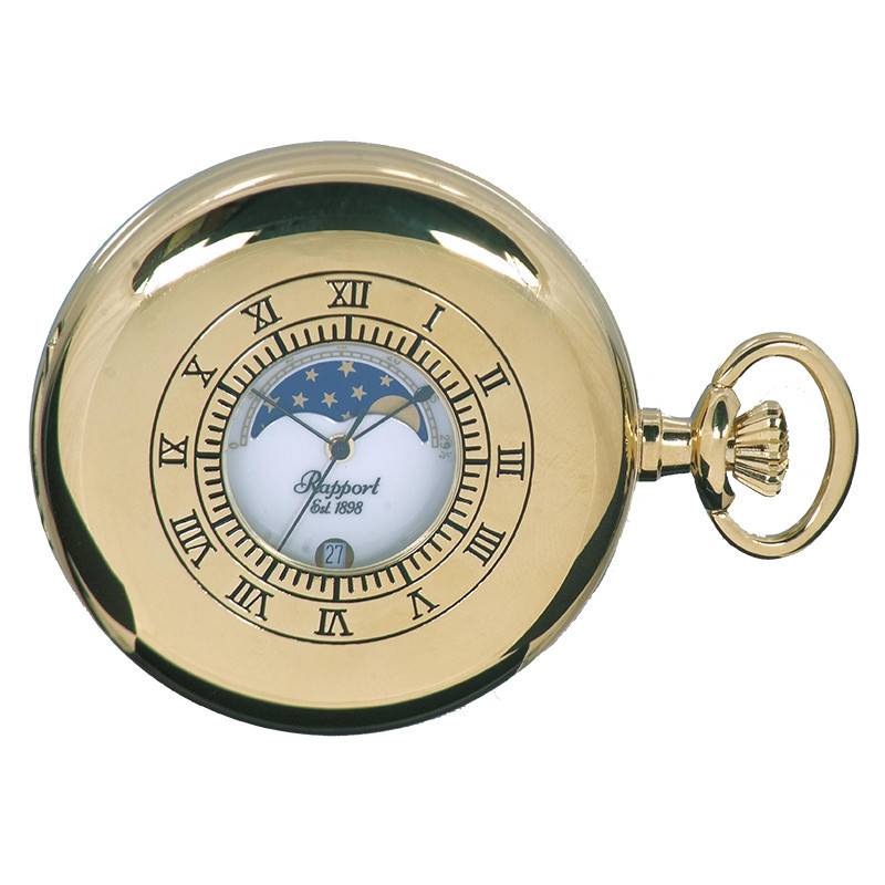 La maison horlogère britannique Rapport London vous présente cette montre de poche Half Hunter au savoir-faire traditionnel. Laissez-vous séduire par son look vintage et son boîtier en métal plaqué or à la finition polie. De forme ronde, il mesure 50 millimètres de diamètre et se glissera aisément dans votre poche. Ce modèle se présente avec un clapet assorti sur lequel sont gravés des index en chiffres romains et un chemin de fer des minutes. Une ouverture permet d'apercevoir le centre du cadran, même lorsque le clapet est fermé. Le cadran est doublement protégé contre les rayures et les chocs par un verre minéral. À trois heures se situe une couronne remontoir qui vous permettra de régler l'heure de votre garde-temps accompagnée par un anneau auquel vous pourrez attacher une chaînette.