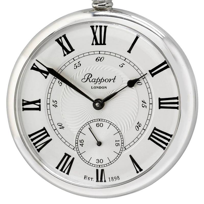 La montre à gousset de la marque Rapport London brille dans un style du début du XXème siècle ! Cette marque anglaise créée en 1898 perpétue la passion pour ces modèles de montres emblématiques. Constituée de métal argenté et poli, elle est de forme ronde et de 48 millimètres de diamètres. Ce modèle se veut très minimaliste sur sa face arrière, qui ne présente d'une finition épurée et magnifiquement polie. A 12h se trouve la boucle, pour attacher une chaîne, et une couronne remontoir crantée.