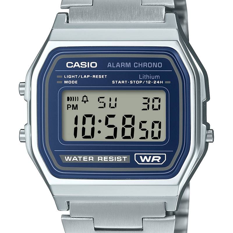 La Montre A158 Blue Accents de Casio Vintage se distingue par son style vintage universellement apprécié. Elle présente un boîtier rectangulaire de dimensions 36,80 mm de long, 33,20 mm de large et une fine épaisseur de 8,50 mm, fabriqué en résine, un matériau synthétique apprécié pour sa robustesse et sa légèreté. Avec un poids total de seulement 45 g, elle est conçue pour une utilisation quotidienne confortable sans compromettre sa durabilité. La conception permet une prise en main agréable et une sensation de légèreté au poignet. La montre affiche un style à la fois gris et bleu, s'adaptant élégamment à divers styles vestimentaires, qu'ils soient classiques ou contemporains. De plus, la fabrication est d'origine japonaise, garantissant une qualité de précision élevée typique de cette région. Sa garantie internationale de 2 ans souligne encore la confiance en sa durabilité exceptionnelle.