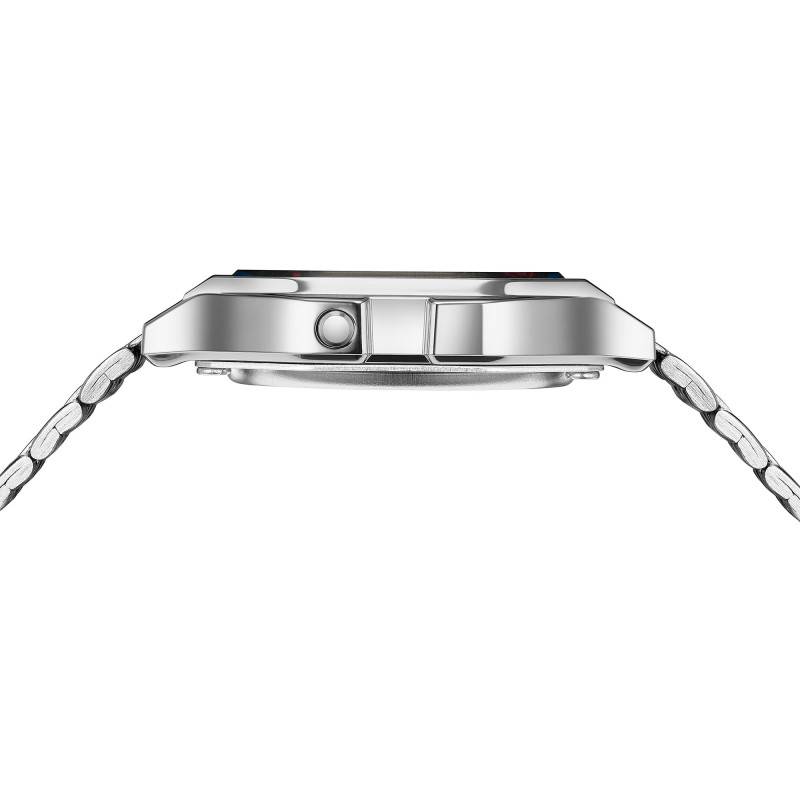 Le cadran de cette montre Casio fascinera les amateurs de design minimaliste par son affichage numérique. Couvert par un verre acrylique, le cadran offre une clarté optimale pour une lecture facile des informations clés. L'affichage numérique présente non seulement l'heure, les minutes et les secondes, mais également le jour et la date, ainsi que l'état d'alarme, tout en étant équipé de LED pour assurer une visibilité impeccable, même en conditions de faible luminosité.
