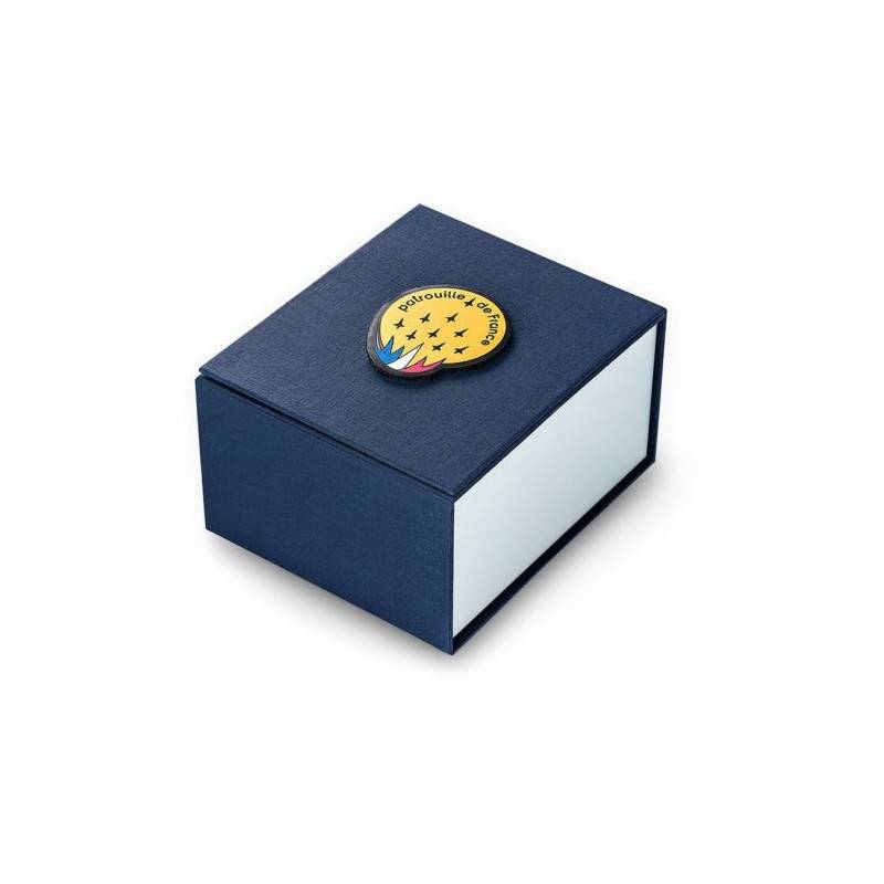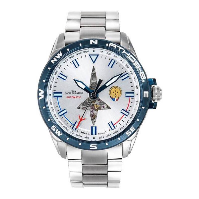 Admirez la nouvelle montre de la maison Patrouille de France, le modèle A8-100ED-668094 issu de la collection Athos 8. Elle arbore un boîtier rond 44 millimètres de diamètre. Une lunette de couleur bleue affichant les quatre points cardinaux nécessaires à l'aéronautique vient habiller ce boîtier. Au niveau de l'index des trois heures, une couronne remontoir vous permettra de piloter vos aiguilles avec précision. Votre garde-temps sera protégé des chocs et des rayures du quotidien grâce à un verre minéral. Ce fond de boîte vissé vous garantira une étanchéité de 10 atmosphères.
