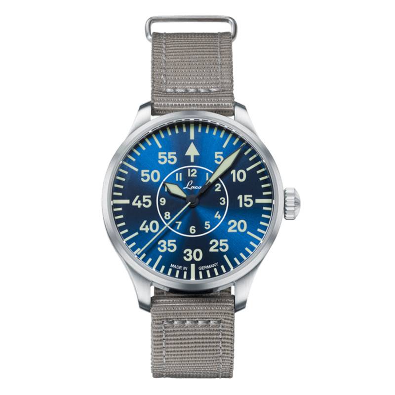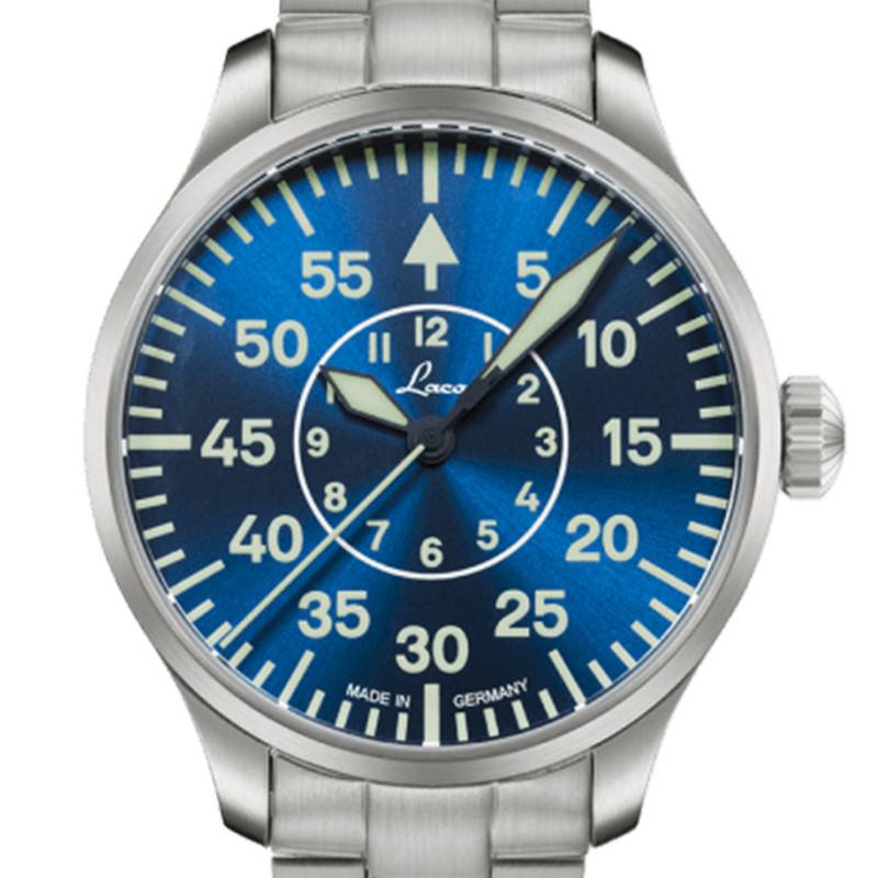Le cadran de la Laco Aachen 39 est l'expression parfaite d'une esthétique sophistiquée et d'une fonction pratique. D'une séduisante couleur bleue avec une finition soleillée, il capte la lumière d'une manière qui souligne la qualité artisanale du produit. Les chiffres arabes, classiques mais lisibles, sont associés à un chemin de fer des minutes méticuleusement conçu pour offrir une lecture rapide et intuitive du temps. Le revêtement de SuperLuminova C3, appliqué sur les aiguilles et les index, assure que cette montre reste lisible dans la pénombre, garantissant ainsi que chaque détail a été pensé pour l'utilisateur exigeant.
