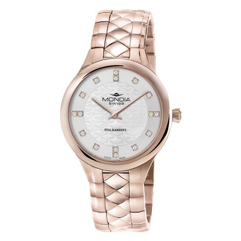 La montre Affinity City Lady Diamonds de Mondia est une pièce véritablement raffinée qui incarne une fusion parfaite entre esthétique et fonctionnalité. Ce garde-temps présente un boîtier rond en acier inoxydable avec un revêtement en PVD or rose, apportant une touche de douceur et de modernité. Avec un diamètre de 32 mm et une épaisseur de 7 mm, elle offre une présence subtile et élégante au poignet, parfaite pour rehausser toute tenue. La qualité du verre saphir garantit une résistance aux rayures incomparable, tout en préservant la visibilité éclatante du cadran.
