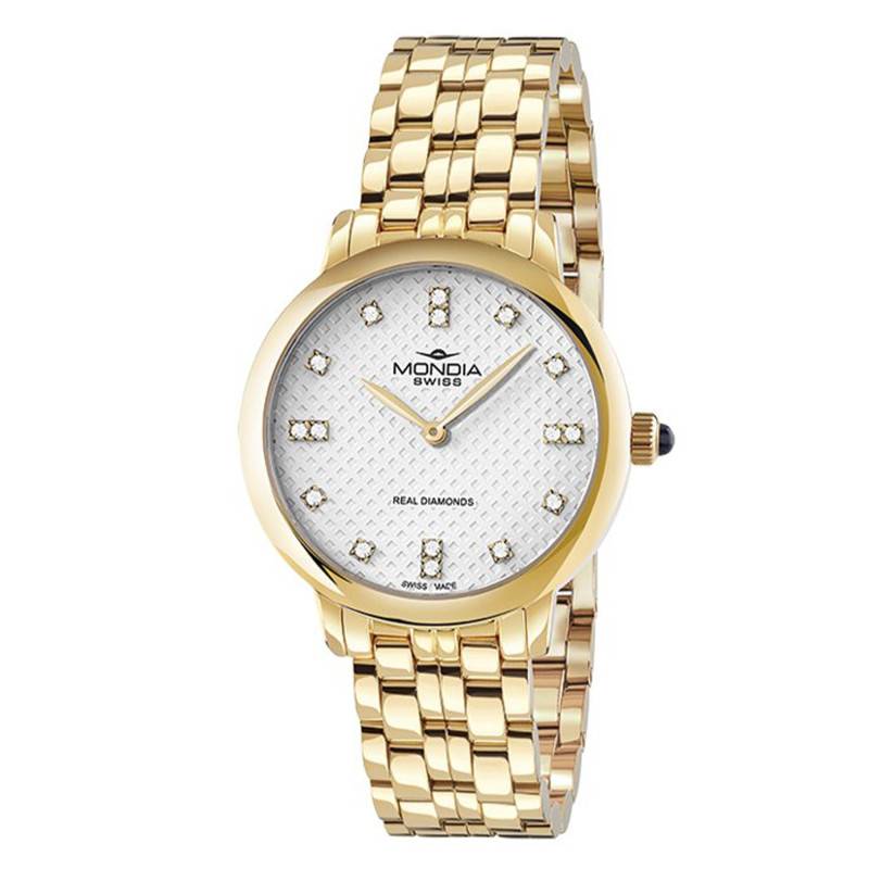 Le cadran de la Mondia Affinity City Lady est une merveille visuelle. D'un éclatant blanc, il arbore une finition guillochée, offrant des jeux de lumière subtils et raffinés. Les index en diamant blanc accentuent son prestige, apportant une touche de splendeur et d'élégance.