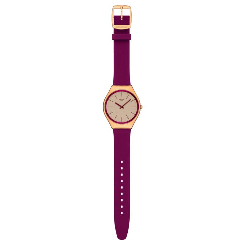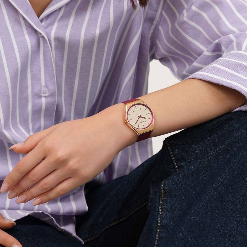 Cette montre Swatch incarne un équilibre parfait entre élégance et fonctionnalité, s'adressant aussi bien aux hommes qu'aux femmes. Le boîtier rond en acier inoxydable avec une finition PVD rose offre une robustesse inégalée, tandis que son diamètre de 38,00 mm et un poids de 40,00 g garantissent un confort optimal au poignet.