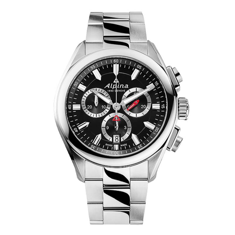 Alpina vous présente cette montre chronographe au look moderne et masculin. La maison a doté son modèle d'un boîtier en deux parties conçu en acier inoxydable brossé et poli. Celui-ci mesure 42 millimètres de diamètre pour une épaisseur de 10,90 millimètres. Afin d'en protéger le cadran et ses composantes, le boîtier est surplombé par un verre saphir bombé garantissant une lecture optimale. Son fond de boîte est gravé et vissé afin d'assurer une étanchéité jusqu'à 10 atmosphères, soit 100 mètres de profondeur.