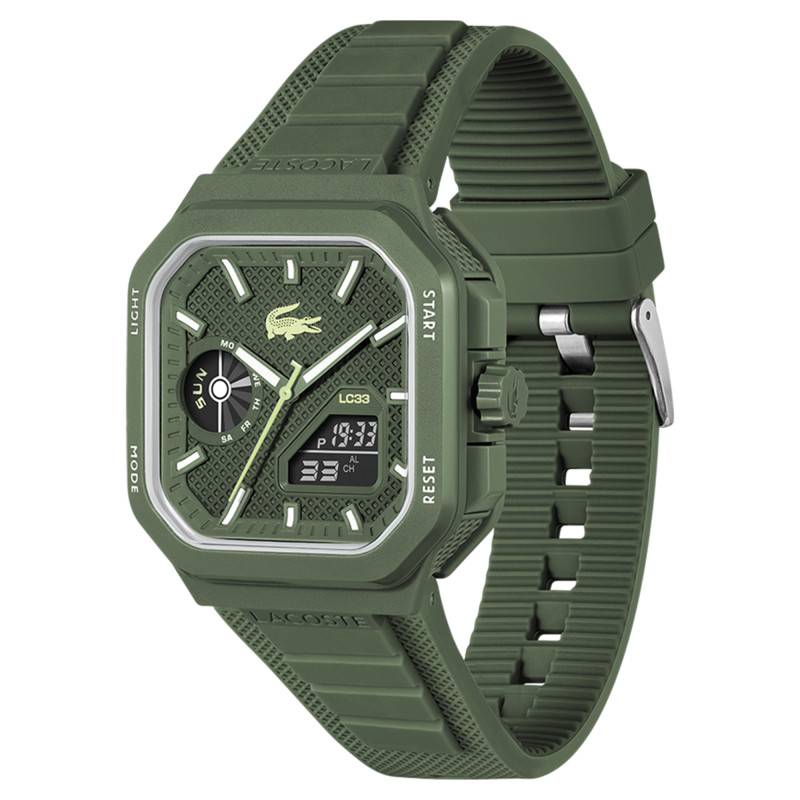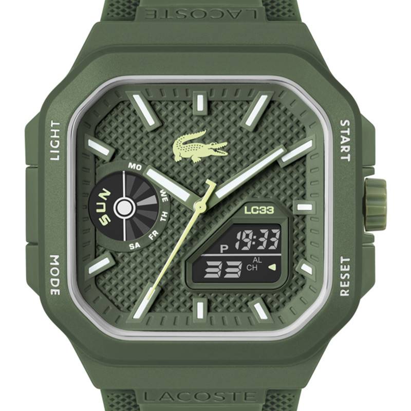La montre Lacoste Lc33 Square se distingue par son design audacieux et moderne, conçu spécialement pour les hommes à la recherche d'élégance et de fonctionnalité. Son boîtier, à la forme octogonale unique, offre une dimension de 35 mm qui s'adapte parfaitement à tout poignet masculin. Fabriqué dans un mélange soigné d'acier inoxydable et de polymère de haute qualité, il allie robustesse et légèreté. La finition de la montre, à la fois polie et satinée, accentue son allure chic tout en assurant une durabilité exceptionnelle. Le choix d'un verre minéral permet non seulement de protéger efficacement le cadran contre les égratignures mais aussi de garantir une clarté optimale. La montre est conçue pour résister à une immersion jusqu'à 10 ATM, ce qui en fait un partenaire fiable pour les expéditions aquatiques modérées. Avec des boutons soigneusement disposés : un bouton remontoir et quatre boutons poussoirs, elle offre une multitude de fonctions tout en restant facile à manipuler avec élégance.