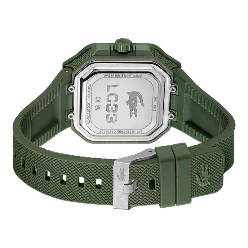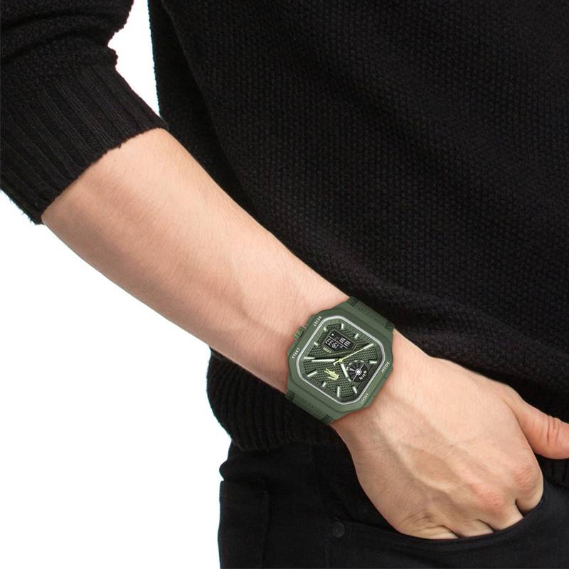 Le bracelet de cette montre est un élément clé de son design robuste et unique. Fabriqué en silicone de couleur verte, il offre une sensation de confort et de souplesse au poignet, idéale pour une utilisation quotidienne. La texture gaufrée ajoute une caractéristique visuelle qui complète superbement le boîtier de la montre, tout en fournissant une meilleure prise en main. Équipé d'une boucle ardillon classique, ce bracelet assure un ajustement sécurisé et fiable.