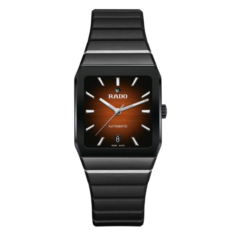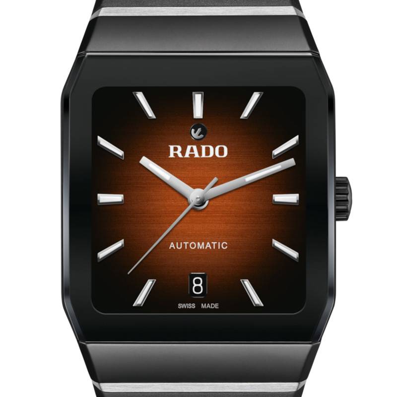 Le cadran est un mélange de charme vintage et de sophistication contemporaine qui témoigne de l'héritage de Rado. Il affiche une couleur brune intense qui se trouve magnifiée par un dégradé qui s'assombrit au fur et à mesure que la couleur atteint la périphérie. Créant le parfait contraste, des index bâton gris vous communiqueront le temps avec plus de précision. Recouverts par un traitement luminescent, ils garantissent une lecture claire dans les endroits à faible luminosité tout comme les aiguilles bâton des heures et des minutes. Celles-ci sont soigneusement associées à la fine trotteuse de couleur argentée qui désigne les secondes avec précision. À 6 heures, vous trouverez un guichet date traditionnel avec un fond noir et un chiffre blanc. Le design intemporel de ce cadran est sublimé par l'ancre mobile en dessous de 12 heures suivies par le nom de la marque noté en grands caractères pour plus de distinction. Enfin, à 6 heures sont inscrites les mentions « Automatic » et « Swiss Made ».