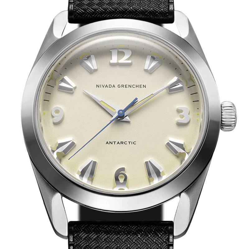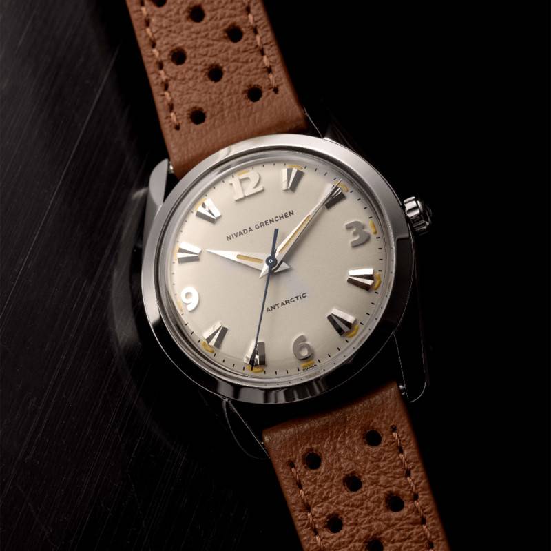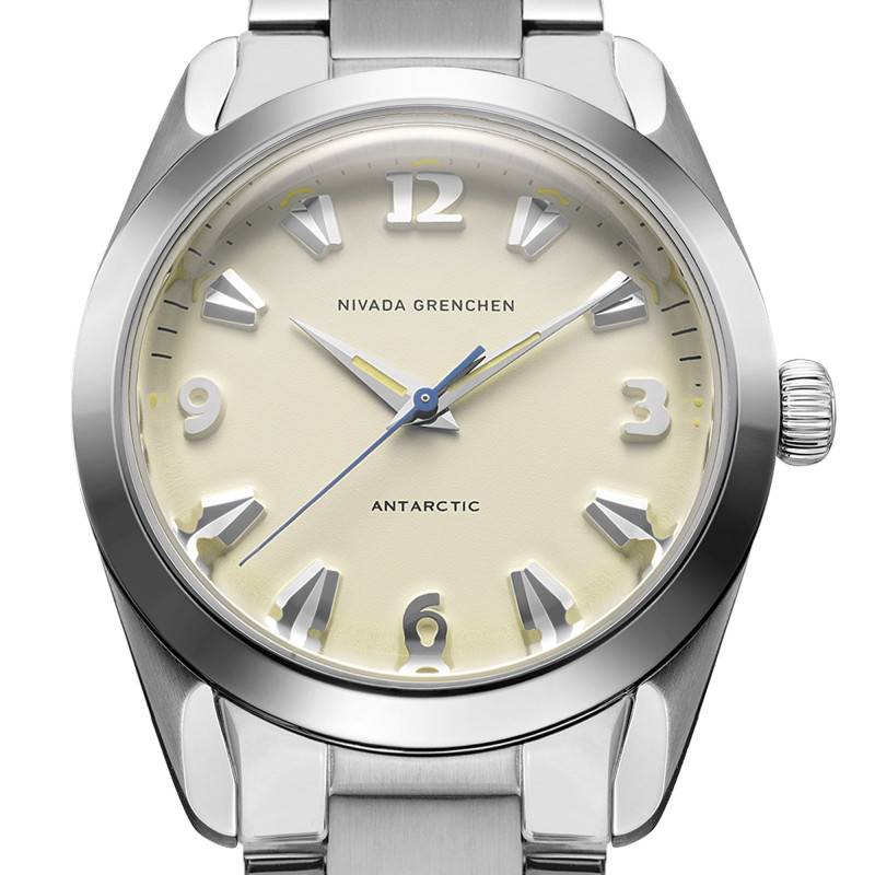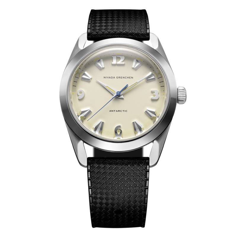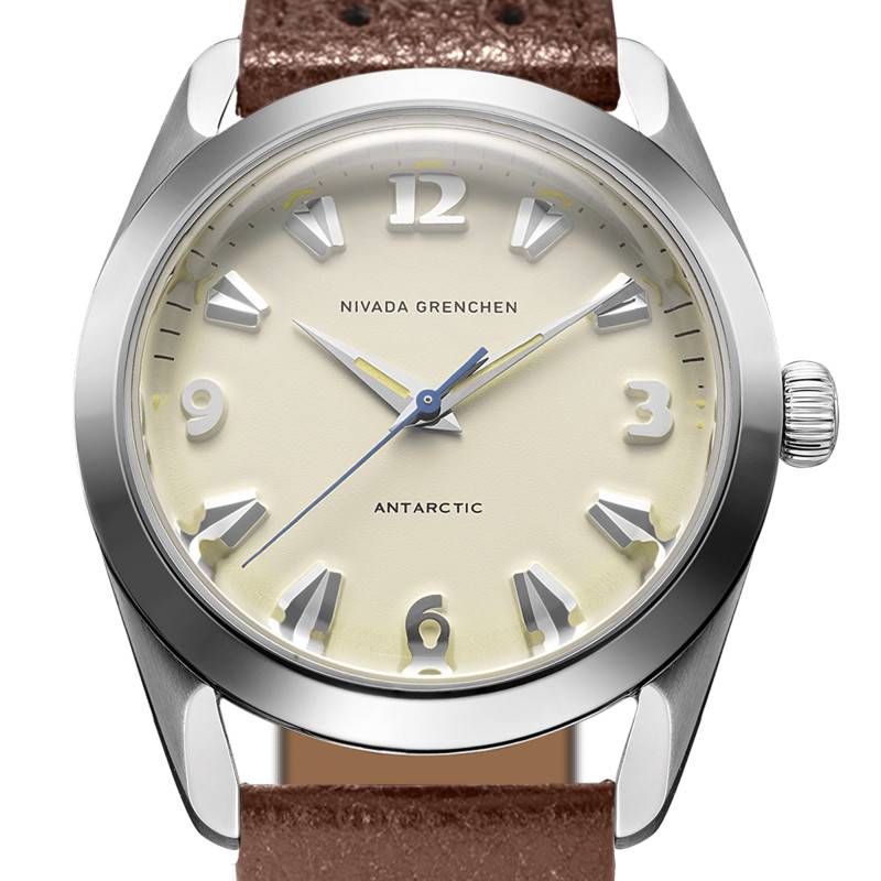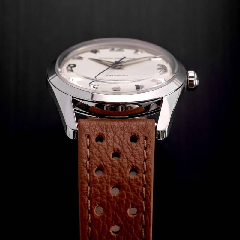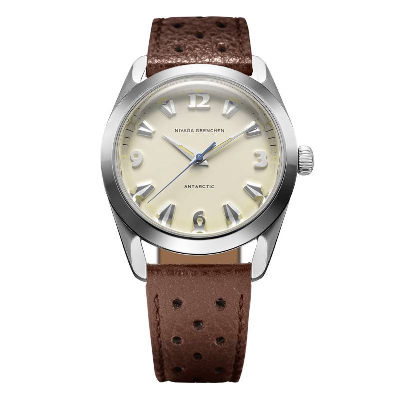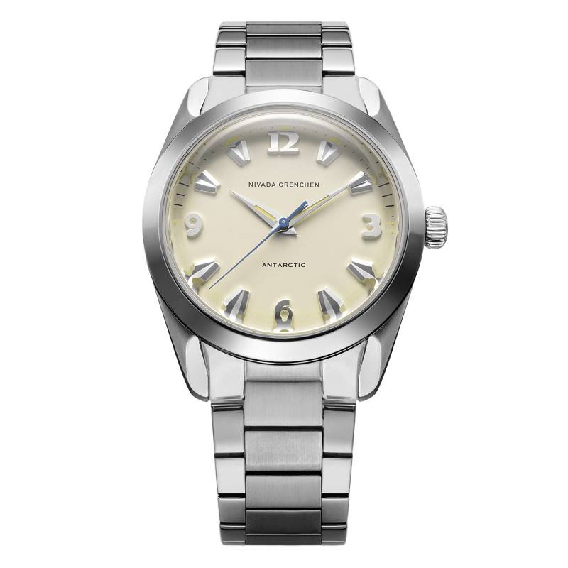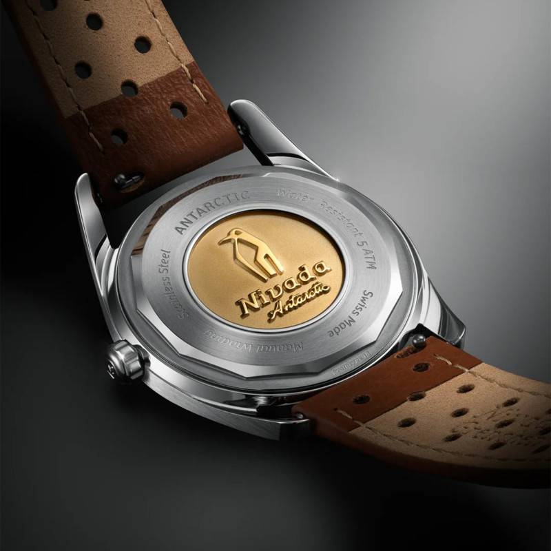 La montre Nivada Grenchen est une réincarnation moderne du modèle Antarctic. Fabriquée avec une grande attention aux détails, elle offre une allure à la fois classique et moderne. Le boîtier de 38 mm est en acier inoxydable 316L qui assure durabilité et résistance. Son épaisseur de 11,95 mm maintient un profil raffiné sans sacrifier la robustesse. Le fond vissé, orné d'une gravure de pingouin et d'un médaillon en or, souligne l'héritage unique de ce garde-temps. Poli et brillant, l'acier reflète magnifiquement la lumière, accentuant l'esthétique subtile et raffinée qui distingue les créations suisses.