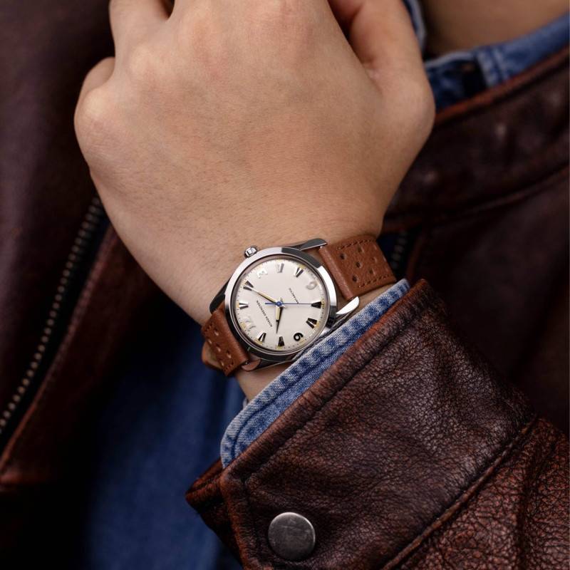 Le mouvement qui anime cette montre est un calibre suisse Soprod P024, reconnu pour sa performance supérieure et sa fiabilité sans faille. Avec une fréquence élevée de 28,800 A/h (4 Hz), ce mécanisme assure une précision inégalée, mariée à une réserve de marche de 38 heures. La masse oscillante visible à travers le fond vissé continue d'alimenter efficacement le mouvement mécanique, garantissant que chaque seconde est capturée avec exactitude.