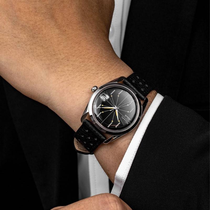 La montre Nivada Grenchen est un hommage au style classique suisse, offrant une élégance raffinée avec son boîtier rond de 38 mm en acier inoxydable 316L. La qualité exceptionnelle de l'acier poli et brillant présente une durabilité et un éclat incomparables. Le verre bombé en saphir protège le cadran tout en lui conférant une allure prestigieuse. Avec une épaisseur de 11,95 mm, elle s'ajuste parfaitement à tout poignet masculin sans paraître volumineuse.