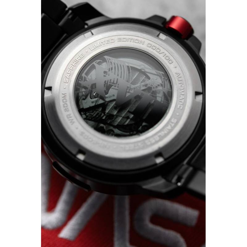 La marque Nubeo a su s'imposer dans l'univers horloger à travers ses modèles à l'aspect raffiné et aux designs uniques. Elle défie les limites de la connaissance humaine en puisant son inspiration dans les mystères des profondeurs marines et les confins de l'espace. Ses garde-temps sont un composé de précision et d'innovation qui incarnent un équilibre délicat entre technicité industrielle et éléments naturels. Ils témoignent de son savoir-faire et de son expertise et se destinent à vous accompagner au quotidien. Aujourd'hui, elle vous présente cette ravissante montre Apollo 55th Automatic "Space Grey" Limited Edition NB-6093-66. C'est un véritable hommage au programme Appolo XVII, dernière mission spatiale lancée du 7 au 19 décembre 1972 sur la Lune. Avec cette mission, la NASA conclut le projet lancé en 1961 par le président John F. Kennedy. C'est un composé d'élégance et modernité qui sublimera votre look. Son boîtier rond est fabriqué en acier inoxydable brossé de couleur noire. Il mesure 48 mm de diamètre pour une épaisseur de 17 mm pour se faire l'allié des hommes urbains. La superbe lunette reprend l'insigne de la mission avec les noms des membres de l'équipage et du programme. Elle entoure le verre saphir plat qui recouvre le cadran. À 3 heures, se place la couronne crantée et protégée de couleur rouge. Elle permet de régler les fonctions de la montre en offrant une meilleure prise en main lors du réglage. Enfin, le fond vissé garantit une étanchéité de 20 ATM.