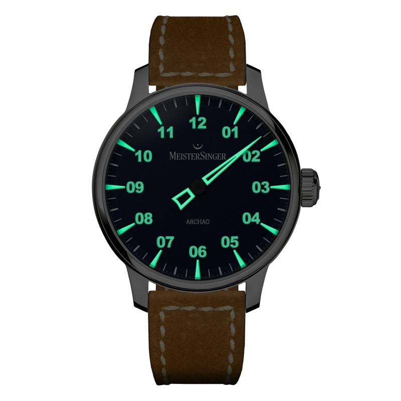 La montre MeisterSinger Archao se distingue par son design audacieux et raffiné. Elle est fabriquée en Suisse, garantissant une qualité exceptionnelle. Le boîtier rond en acier inoxydable 316L confère à cette pièce une robustesse à toute épreuve tout en affichant une esthétique contemporaine. Grâce à une épaisseur de 12,30 mm et un diamètre de 43 mm, cette montre frappe par son allure imposante sans être excessive. Le verre saphir bombé complète parfaitement l'ensemble, offrant une protection optimale contre les rayures, tout en facilitant la lecture du temps avec clarté.