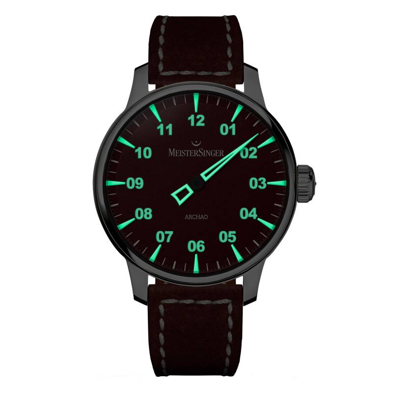 Cette montre MeisterSinger Archao présente une apparence à la fois intemporelle et contemporaine, grâce à son boîtier rond en acier inoxydable 316L. Le boîtier mesure 43 mm de diamètre et 12,30 mm d'épaisseur, dimensions parfaites pour un poignet masculin, offrant une présence notable sans être écrasante. Sa robustesse est complétée par un verre bombé en saphir, qui assure une protection exceptionnelle contre les rayures tout en offrant une transparence et une clarté optimales.
