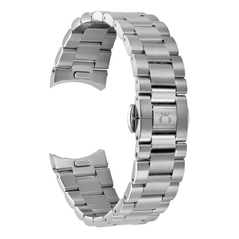 Cette montre est minutieusement montée sur un bracelet gris qui lui confère un bel aspect. Fabriqué à partir d'acier inoxydable 316L, il se compose de trois rangées de maillons brossés qui lui assurent cette magnifique allure. Facilement interchangeable grâce à son système Milus Safe Release, il s'accordera à votre style vestimentaire du quotidien tout en rehaussant votre apparence. Avec une largeur d'entrecorne de 20 mm, il se ferme par le biais d'une boucle déployante papillon.