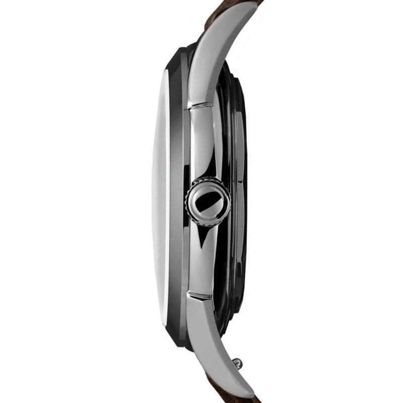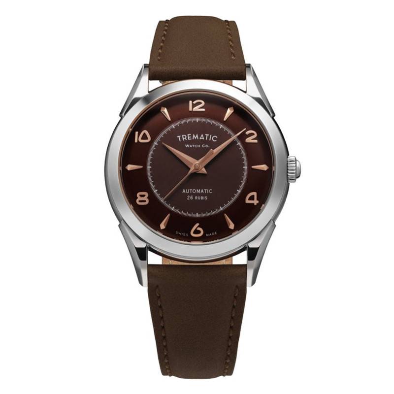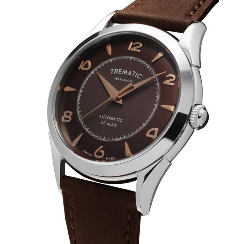 La montre Archivio Uno - ref. 502 - Choco de la marque Trematic est un savant mélange de modernité et de tradition horlogère suisse. Dotée d'un boîtier rond en acier inoxydable 316L, elle affiche une robustesse à toute épreuve avec un diamètre de 38 mm et une épaisseur de 9 mm. Les finitions polies et satinées donnent à la montre une allure à la fois élégante et raffinée, parfaite pour les occasions formelles comme pour une utilisation quotidienne. Le verre saphir, connu pour sa durabilité et sa résistance aux rayures, est bombé pour une esthétique séduisante et bénéficie d'un double traitement antireflets, ce qui offre une clarté remarquable en toute situation.