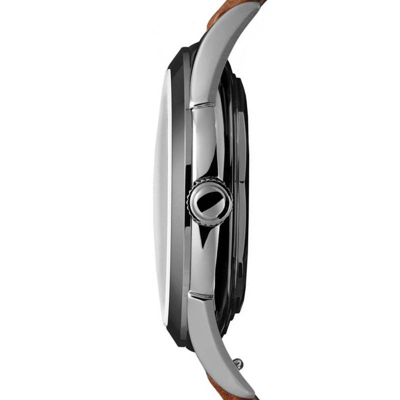 Le bracelet de la montre, en matière végétale de couleur marron, est un choix conscient et raffiné, ajoutant une dimension écologique et moderne à cet accessoire classique. La largeur de 20 mm garantit une stabilité sans faille sur le poignet. La surpiqûre fine et lisse sublime l'esthétique du bracelet, conférant une allure chic et sophistiquée. Le tout est complété par une fermeture à boucle ardillon, un système éprouvé qui offre une sécurité optimale tout en étant facile à ajuster pour garantir le meilleur ajustement possible.