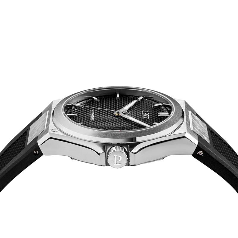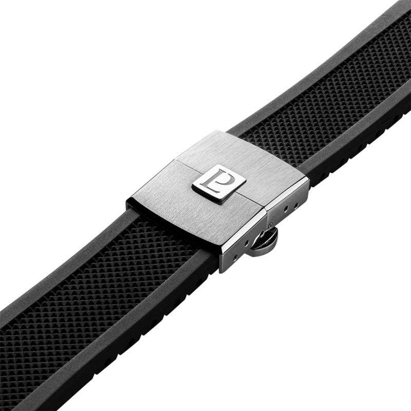 Le bracelet de cette montre est réalisé en caoutchouc noir qui offre à la fois souplesse et résistance. Grâce au système de fermeture à boucle déployante papillon, le bracelet s'ajuste avec facilité tout en garantissant une sécurité. Avec une entrecorne de 23 mm, il s'intègre parfaitement avec l'ensemble de la montre tout en apportant une touche de sophistication sportive.