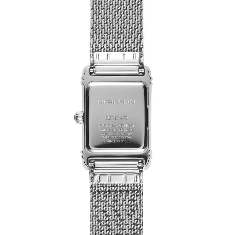 À l'allure féminine et distinguée, ce garde-temps se dote d'un véritable savoir-faire ancestral et d'une élégance à la française. Issue de la collection Art Déco de la maison horlogère Michel Herbelin, cette pièce horlogère n'hésitera pas à ajouter à votre tenue une note chic et tendance. Disposant d'un boîtier à la forme rectangulaire, ce garde-temps affiche une longueur de 24,40 millimètres et une largeur de 20,30 millimètres. En acier inoxydable de type 316L et de couleur argentée, ce boîtier vous assurera une robustesse indéniable. Un verre saphir surmonte l'ensemble de ce garde-temps afin de lui assurer une meilleure résistance. Finalement, la couronne-remontoir cannelée vient se loger à sa place traditionnelle, c'est-à-dire à 3 heures.