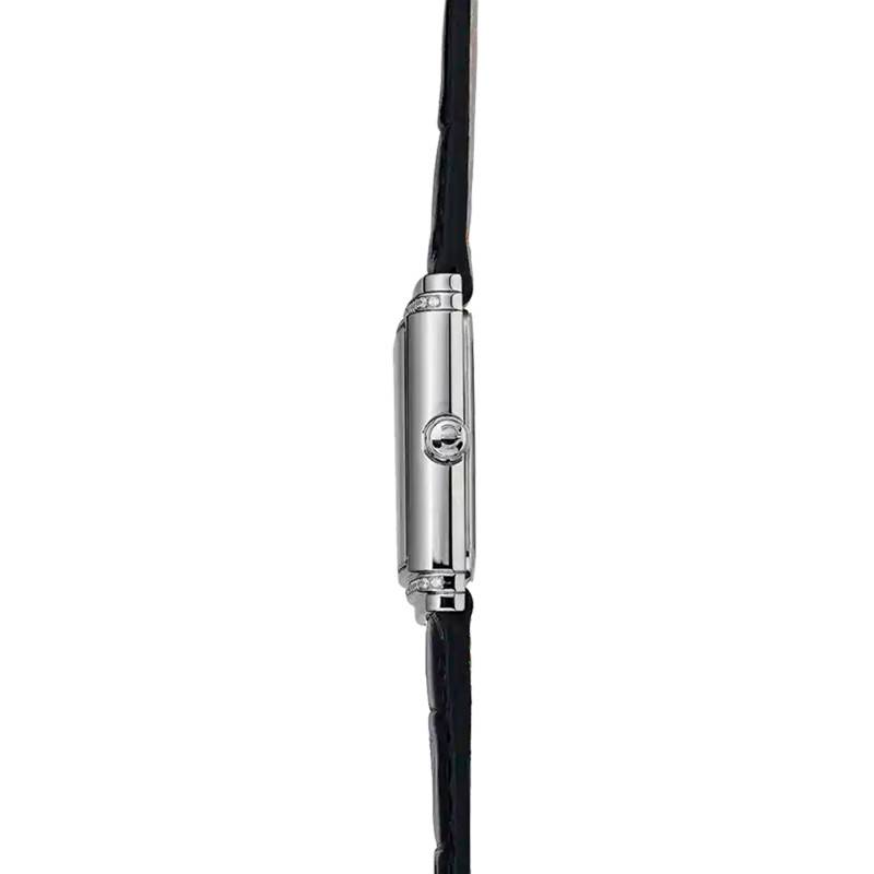Le bracelet qui accompagne cette montre est tout aussi attentionné dans sa conception que le reste de ce sublime garde-temps. Confectionné en cuir d'alligator noir, il est à la fois souple et résistant, promettant un confort d'usage quotidien tout en conservant une allure sophistiquée. Le bracelet, doté de fines surpiqûres, ajoute une dimension supplémentaire de détail et de qualité artisanale. Avec une entrecorne mesurant 16 mm, il offre une fixation solide tout en préservant l'esthétique épurée et fluide du modèle. Équipé d'une boucle ardillon, le bracelet assure un ajustement personnalisé et sécurisé.