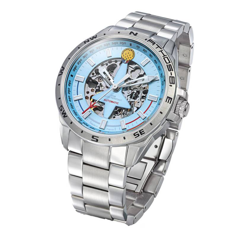 La montre Athos 8 A8-100ED-668144 de la Patrouille de France est un hommage saisissant à l'ingéniosité horlogère française. Ce modèle pour hommes, fabriqué en France, se distingue par son boîtier rond en acier inoxydable d'un diamètre impressionnant de 44 mm, offrant une présence assurée au poignet. Le mélange magistral de bleu et gris crée un impact visuel immédiat, alliant modernité et tradition. L'acier inoxydable, en tant que matériau principal, assure non seulement une esthétique irréprochable mais aussi une durabilité exceptionnelle, résistant aux défis quotidiens avec brio. La montre est dotée d'une lunette en acier inoxydable, protégeant un mouvement exquis, tandis que le fond transparent vissé révèle le cœur battant complexe de cet instrument de temps.