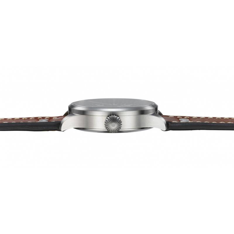 Admirablement rond, le cadran de la montre est de couleur noire et présente un design similaire aux compteurs présents dans les cockpits des avions. Les chiffres arabes qui marquent les heures sont épais et les aiguilles qui indiquent les heures ainsi que les minutes affiche la même forme que les aiguilles présentes sur les compteurs d'avion. Notez que tout comme les chiffres arabes, elles sont revêtues d'un traitement Superluminova C3. Le Superluminova produit une forte lumière fluorescente, lorsque la montre se trouve en milieux obscurs. Un chemin de fer des minutes se trouve sur le pourtour du cadran. Enfin, le nom de la maison horlogère allemande est inscrit à 12 heures.