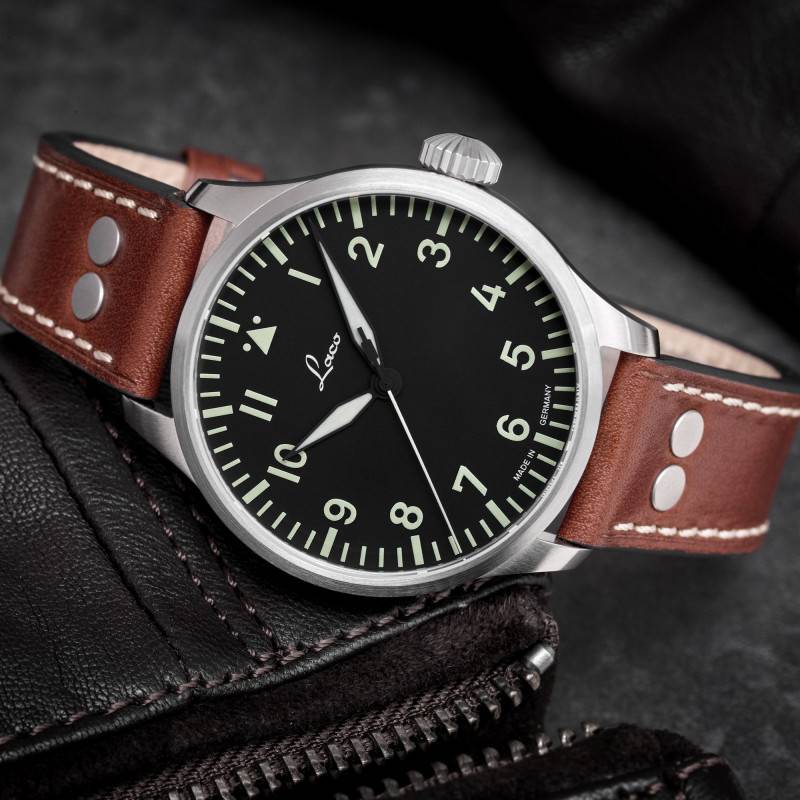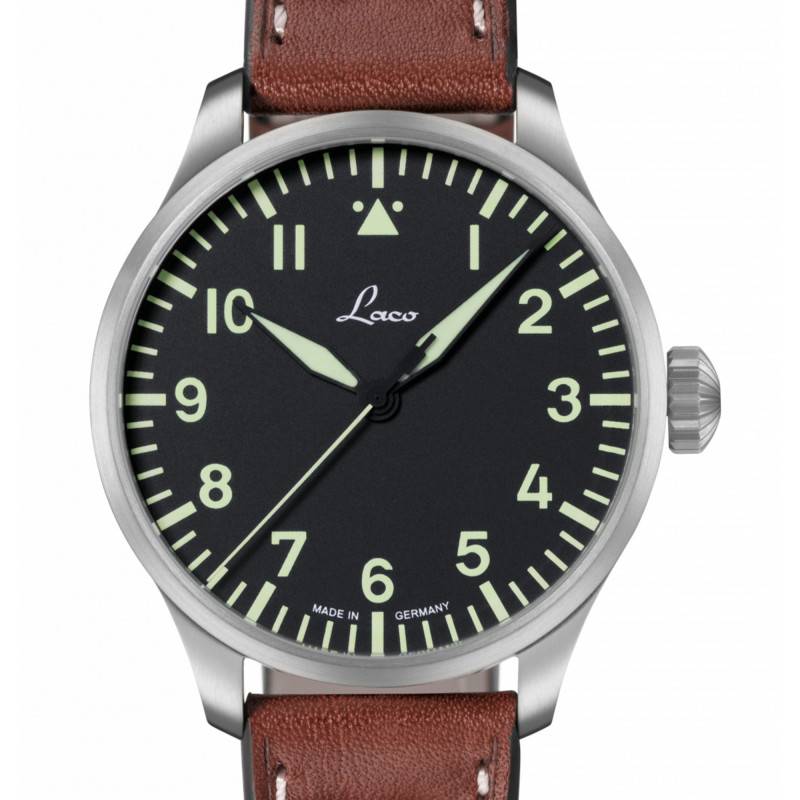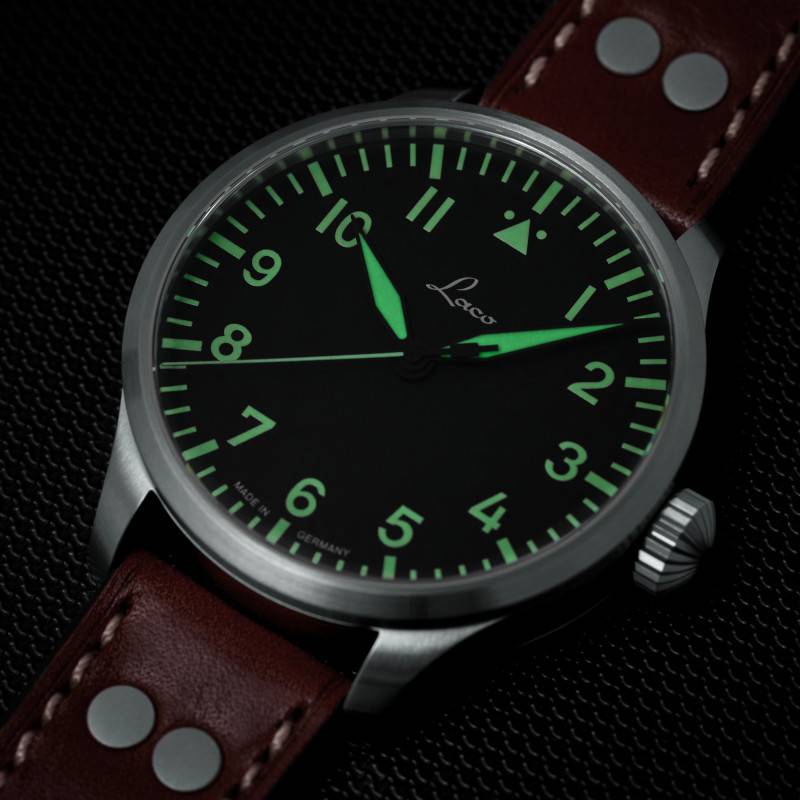 Les garde-temps de la maison horlogère allemande LACO se destinent aux passionnés de montre au look aviateur. Il y a 90 ans cette marque habillait les poignets des pilotes germaniques. Aujourd'hui encore la maison allemande continue à habiller les poignets masculins. Ce modèle est à l'image des montres LACO: solide et robuste ! Les dimensions de la montre confirment cela. Le boitier est en acier inoxydable et présente un diamètre de 42 millimètres pour une épaisseur de 12 millimètres. La couronne imposante, se trouve à sa position habituelle, c'est-à-dire à 3 heures. Un verre saphir surplombe le cadran afin de le protéger. Il est de forme plate. Notez que le verre saphir correspond à un verre qui ne craint pas les rayures. Pour le fond de la boite, il est emboîté. Cependant, il vous offre la possibilité de vous laisser séduire par le merveilleux mouvement automatique japonais Miyota 821 A qui anime la montre. En effet, le fond de la boite est transparent. Ce modèle séduira les hommes qui aiment se distinguer avec élégance tout en restant original.
