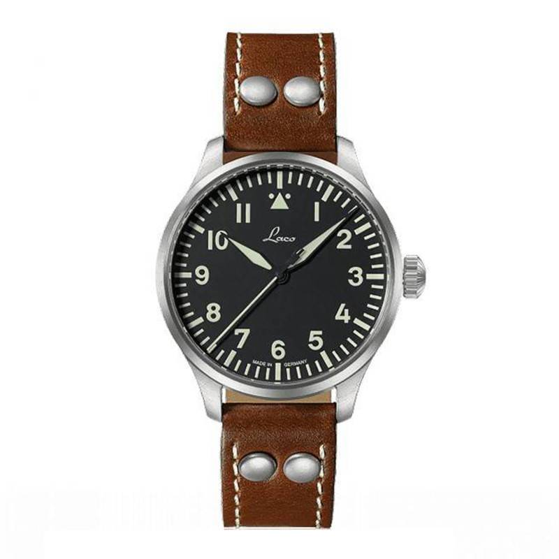 La maison horlogère allemande LACO produit des garde-temps pour les férus de montre au look aviateur. Dans les années 1940 cette marque habillait les poignets des pilotes germaniques. Aujourd'hui après 90 ans d'existence la maison allemande continue à habiller les poignets masculins. Ce modèle est à l'image des montres de la maison LACO: solide et élégant ! Le boitier en acier affiche un diamètre de 39 millimètres pour une épaisseur de 12 millimètres. La couronne se positionne à sa place habituelle, à savoir à 3 heures. Le verre qui surplombe le cadran afin de le protéger est un verre saphir de forme plate. Le verre saphir correspond à un verre qui ne craint pas les rayures. Le fond de la boite est quant à lui emboîté et vous offre la possibilité de contempler le merveilleux mouvement automatique japonais Miyota 821 A qui anime la montre. Ce modèle séduira les hommes qui aiment se distinguer avec élégance tout en restant original.