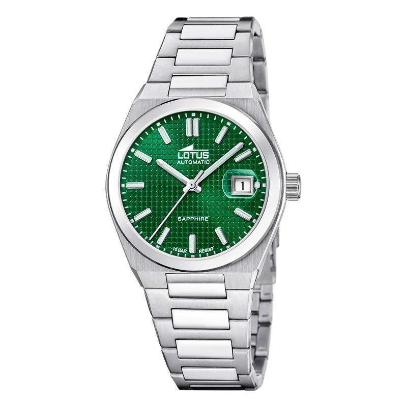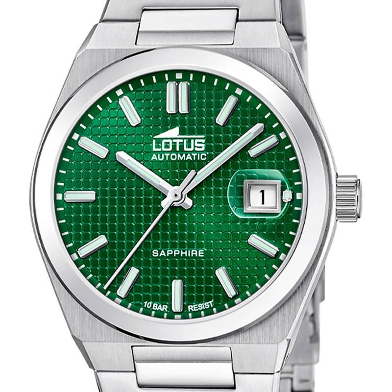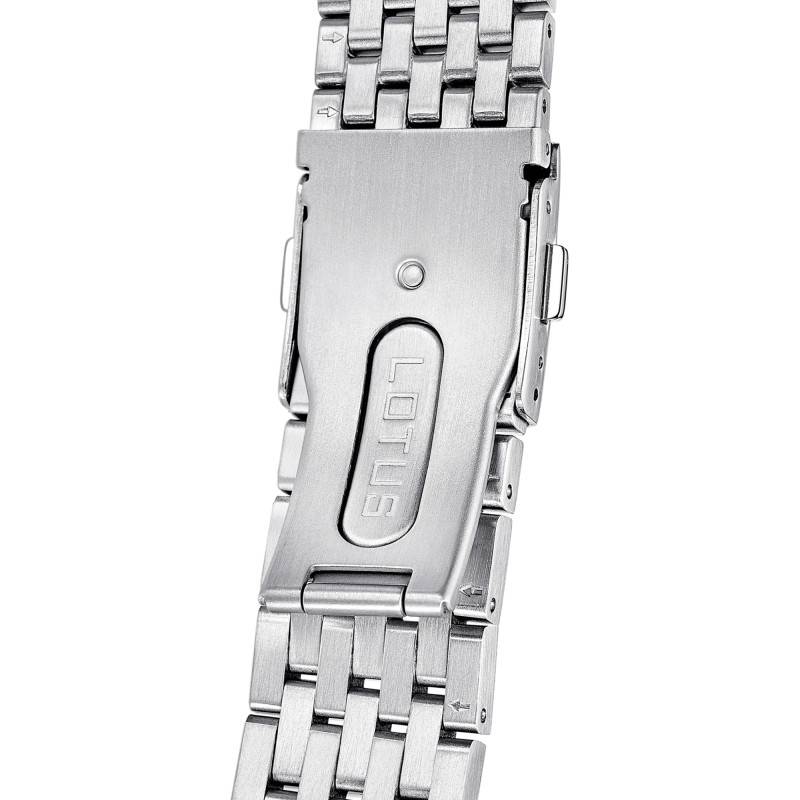 Lotus est une marque qui fabrique des montres visant à captiver l'attention des passionnés d'horlogerie. Elle se positionne sur le marché en mettant l'accent sur la performance et l'élégance. Chaque création reflète l'innovation de ses artisans et le soin qu'ils apportent aux détails. La Montre Automatic 18999/3 est un accessoire remarquable. Elle allie élégance et performance et dispose d'un boîtier en acier inoxydable de forme ronde affichant un design moderne et sophistiqué. Mesurant 39 mm de diamètre, il s'adaptera parfaitement aux poignets masculins. Le verre saphir plat dont il est muni protège le cadran contre les chocs, tandis que la couronne crantée positionnée à droite assure le réglage des fonctions de la montre. Enfin, le fond de boîte transparent et vissé garantit une étanchéité de 10 ATM.