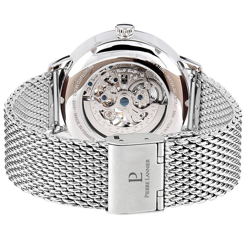 Depuis plusieurs années, la marque française Pierre Lannier met en valeur son savoir-faire horloger en proposant des montres originales et revisitées avec soin. Elle conçoit des montres. Elle propose une large sélection de modèles au design intemporel et à la précision exceptionnelle. Aujourd'hui, elle est heureuse de vous présenter la montre 323D171 de la collection Automatic, qui est destinée aux poignets masculins. Son boîtier rond en acier inoxydable poli de teinte grise dispose d'un diamètre de 42 mm et d'une épaisseur de 13,50 mm. Assez imposant, il est surmonté d'un verre minéral et affiche une couronne crantée à 3 heures pour faciliter la prise de main. Enfin, cette montre pesant 116 g est équipée d'un fond de boîte qui lui assure une étanchéité de 5 ATM.