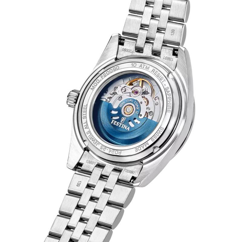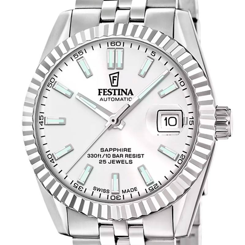 La montre Festina Swiss Made incarne l'élégance et la robustesse, caractéristiques essentielles pour tout garde-temps d'exception. Avec son boîtier rond en acier inoxydable 316L, elle allie durabilité et esthétique avec une brillance éblouissante issue de sa finition polie et brillante. D'un diamètre de 41,00 mm et d'une épaisseur de 10,75 mm, elle s'adapte parfaitement au poignet masculin tout en offrant une présence affirmée. Son verre saphir, choisi pour sa résistance unique aux rayures, assure une protection optimale du cadran tout en ajoutant une touche de luxe indéniable. Le fond de la montre est non seulement vissé mais aussi transparent, permettant ainsi d'admirer le mécanisme complexe et sophistiqué en action.