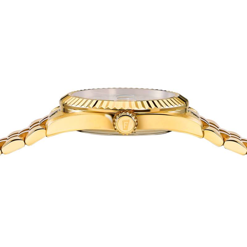 Le bracelet en acier inoxydable 316L de couleur dorée complète à merveille le boîtier robuste et brillant de la montre. Sa largeur à l'entrecorne est de 21,95 mm, assurant un maintien et une durabilité exceptionnels. La montre est dotée d'une boucle déployante qui permet une mise en place rapide et facile tout en offrant un ajustement sûr.
