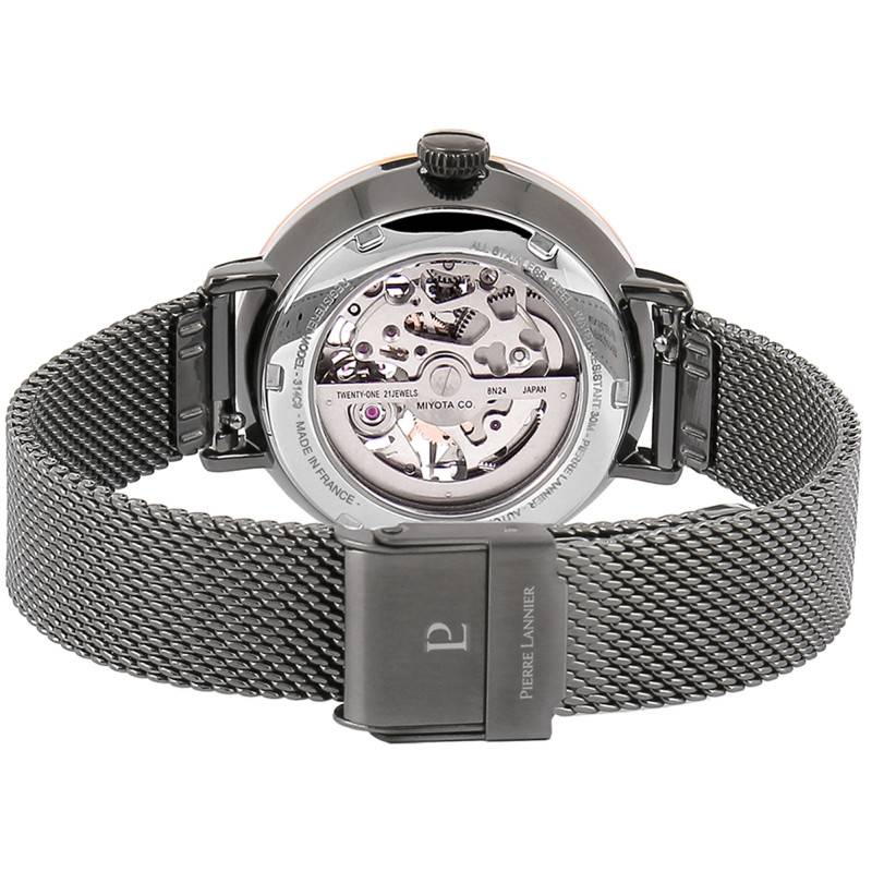 La maison française Pierre Lannier vous présente ce modèle ultra féminin et raffiné. Éclatant et aux lignes épurées cette montre présente un boîtier rond de 35 millimètres diamètre en acier inoxydable qui bénéficie d'un traitement PVD or rose. Un verre minéral résistant aux chocs surmonte ce boîtier afin de protéger le cadran. Il est cerclé par une lunette PVD or rose. Une couronne remontoir placée à 3 heures vous permettra le réglage des 3 aiguilles. Cette magnifique montre saura s'accorder avec un look casual de tous les jours et avec une tenue de soirée élégante et sophistiquée.
